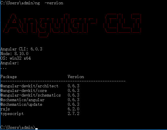 安装的 Angular 版本是 Angular6,进入电脑的 cmd 命令行环境下,运行如下命令
