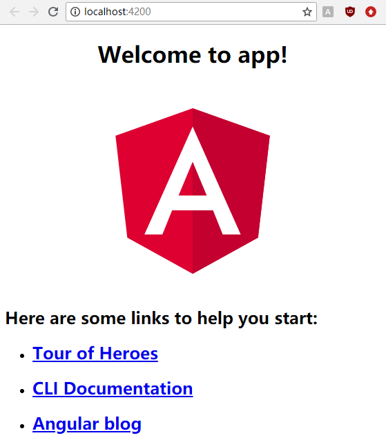 命令运行完成后,使用 ng serve 运行项目,浏览器打开本地4200端口,出现下图。
