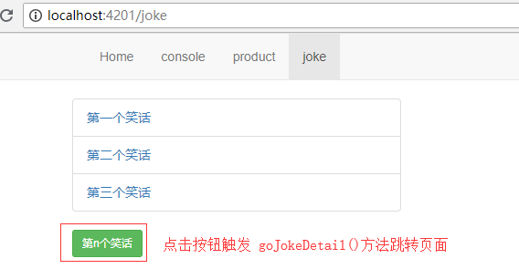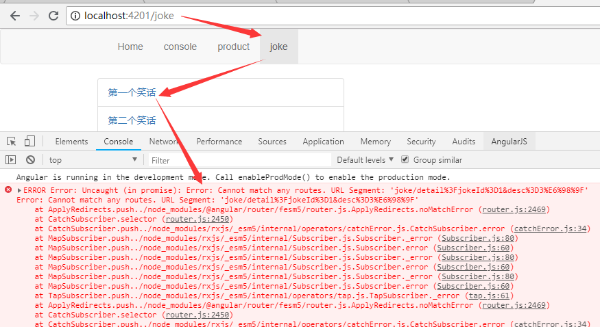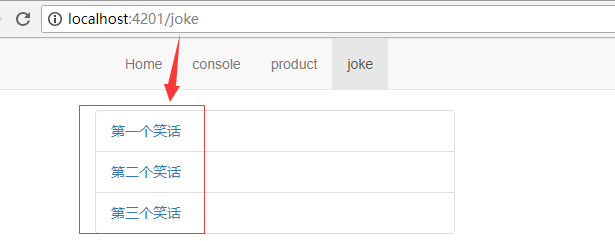 1,使用命令 ng g m joke --routing,ng g c joke/list ng g c joke/detail 创建 joke 模块,joke/list 组件,joke/detail 组件,修改已有代码如下所示。