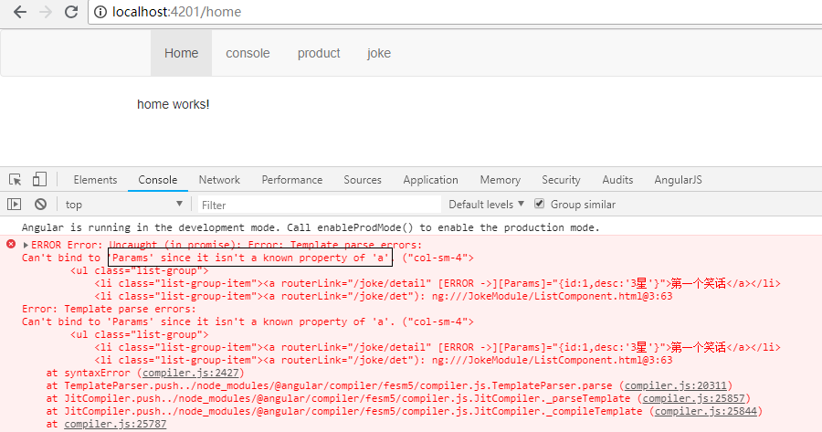在 Angular 中,这是一种错误的写法,其错误如下图所示。