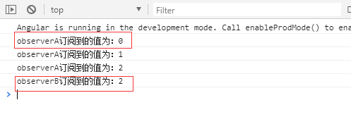 从上图中可以看到,observerB 获取到了 _obb 对象的最新状态,并且最开始时,Subject 对象推送了一个 0