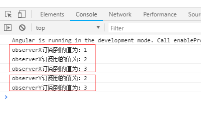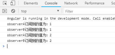 上面定义了一个观察者,当观察者订阅对象后,每次观察者会将接收的值在控制台输出,其代码如下所示